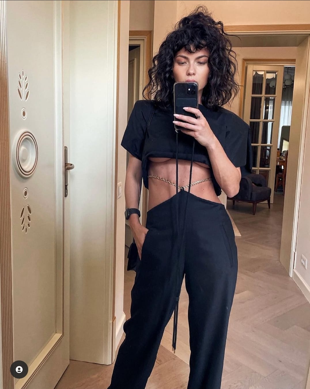 În ultimele selfie-uri postate pe Instagram, Maria Popovici ține în mână un iPhone 11 cu care, de cele mai multe ori, se fotografiază în oglindă.