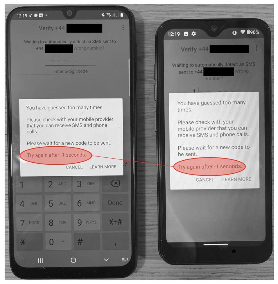 Chiar dacă tu primești mesaje pe telefon cu acel cod de autentificare cerut la fiecare instalare a WhatsApp-ului, trimis printr-un SMS, hackerul va fi, în continuare, cu un pas înaintea ta, pentru că va introduce un cod greșit de mai multe ori, ceea ce va duce la suspendarea contului pentru 12 ore. Dacă se întâmplă asta, și tu, și cel care încearcă să-ți spargă contul de WhatsApp veți primi același mesaj, care ar arăta cam așa: