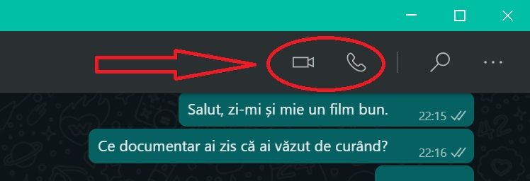 4. Contul tău de WhatsApp se va activa, așa că poți efectua apeluri vocale sau video, ca și cum ai fi pe telefon, din dreapta, sus, în orice chat privat.