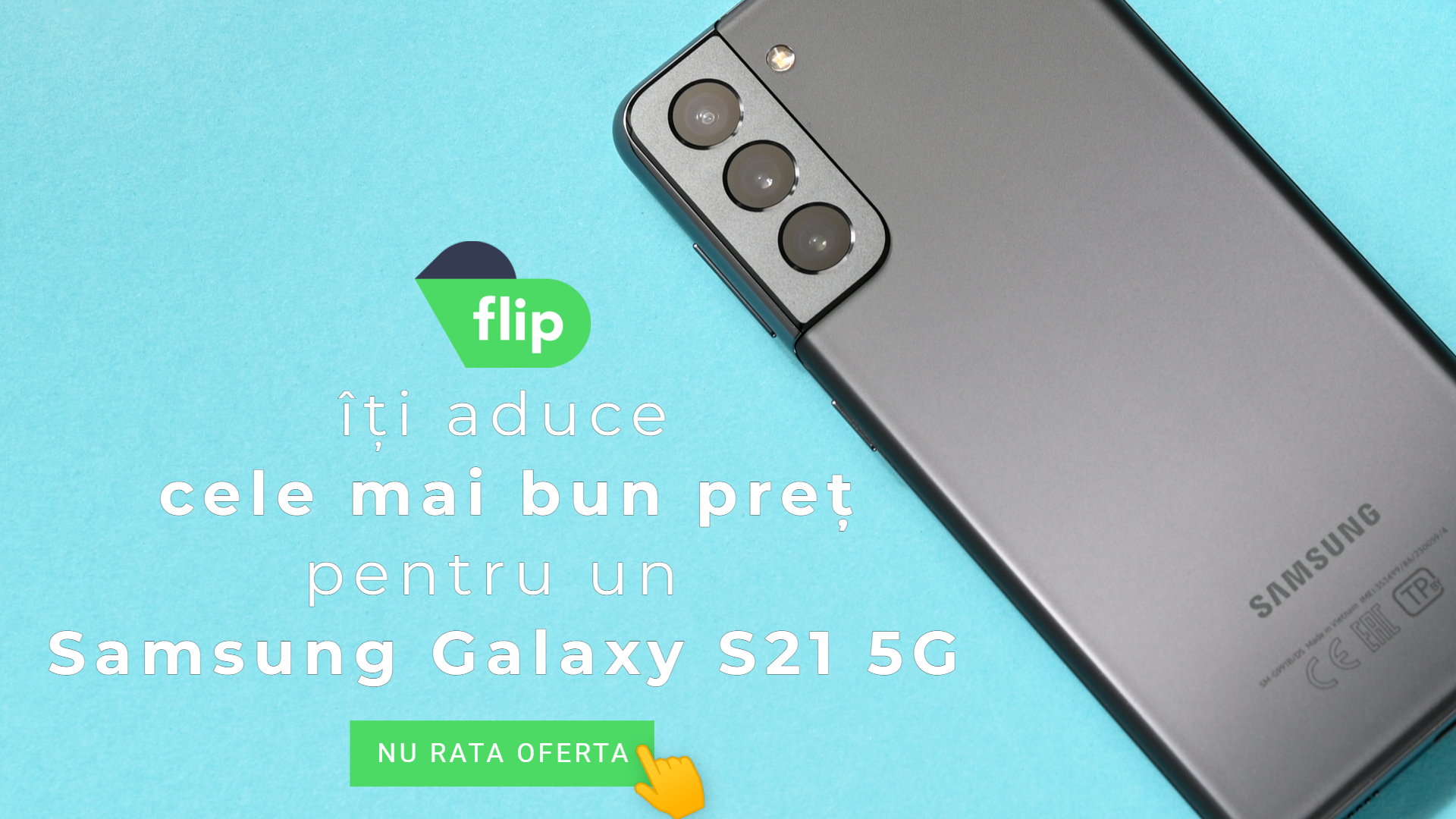 La lansare, Galaxy S21 5G avea prețul de producător de 799 de dolari, însă astăzi îl poți comanda de la Flip.ro pentru doar 2.399 lei (cel mai mic preț disponibil la momentul scrierii acestui articol).